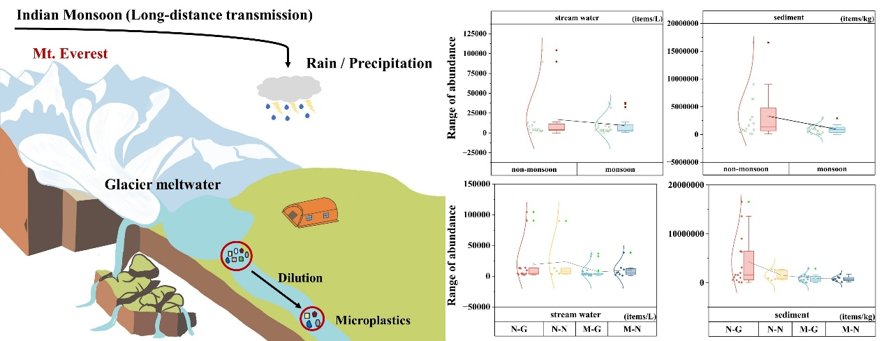 上述成果以Atmospheric emissions of microplastics entrained with dust from potential source regions和Riverine microplastics in the Mount Everest region affected by glacier meltwater為題發(fā)表在Journal of Hazardous Materials上。該研究獲國家自然科學青年基金B(yǎng)類和甘肅省杰出青年資金聯(lián)合資助。