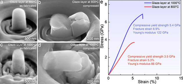 圖4.在800 ℃和1000 ℃下形成的釉質(zhì)層的力學(xué)性能