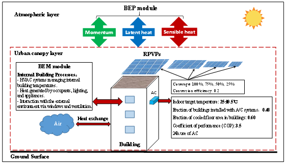 在WRF/BEP+BEM模型中用于太陽能板屋頂模擬的城市網(wǎng)格單元示意圖