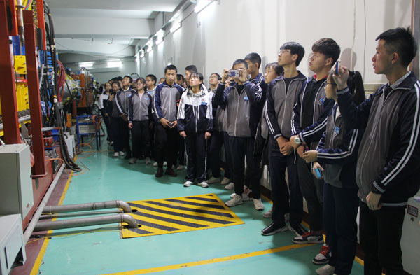 在中科院近代物理研究所,同學(xué)們參觀了蘭州重離子加速器國家實(shí)驗(yàn)室展廳,通過科研人員的講解了解到蘭州重離子加速器是我國規(guī)模最大、加速離子種類最多,能量最高的重離子研究裝置,主要技術(shù)指標(biāo)達(dá)到國際先進(jìn)水平,先后取得了以新核素合成、核質(zhì)量精確測量、重離子治癌研究等為代表的一批重要科研成果,使我國重離子物理及交叉學(xué)科研究進(jìn)入國際先進(jìn)行列。在科研人員的帶領(lǐng)下,同學(xué)們有幸親自走進(jìn)重離子加速器國家實(shí)驗(yàn)室,近距離對話科學(xué)大裝置,大家好奇的眼神,激動(dòng)的心情,溢于言表。