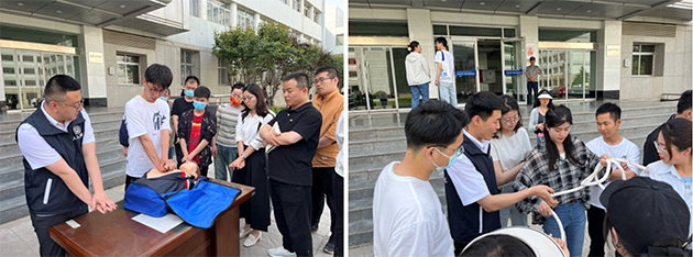 培訓(xùn)結(jié)束后,在戶外開展了突發(fā)事件演練。教官逐一演示了心肺復(fù)蘇、海姆立克急救法和逃生自救繩索打結(jié),介紹了每個步驟的操作要點,參會人員親身操作體驗,提升了應(yīng)急自救、互救技能。