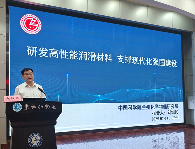 學術活動環(huán)節(jié),中國科學院院士、蘭州化物所學術委員會主任委員劉維民研究員作了題為“研發(fā)高性能潤滑材料 支撐現(xiàn)代化強國建設”的邀請報告。低碳催化與二氧化碳利用全國重點實驗室副主任崔新江、潤滑材料全國重點實驗室副主任王道愛、精細石油化工中間體國家工程研究中心副主任畢迎普、蘭州潤滑材料與技術創(chuàng)新中心副主任王廷梅、天然藥物與化學測量研究中心主任楊軍麗和資源化學與能源材料研究中心楊兵軍副研究員分別介紹了各自實驗室(中心)基本情況。